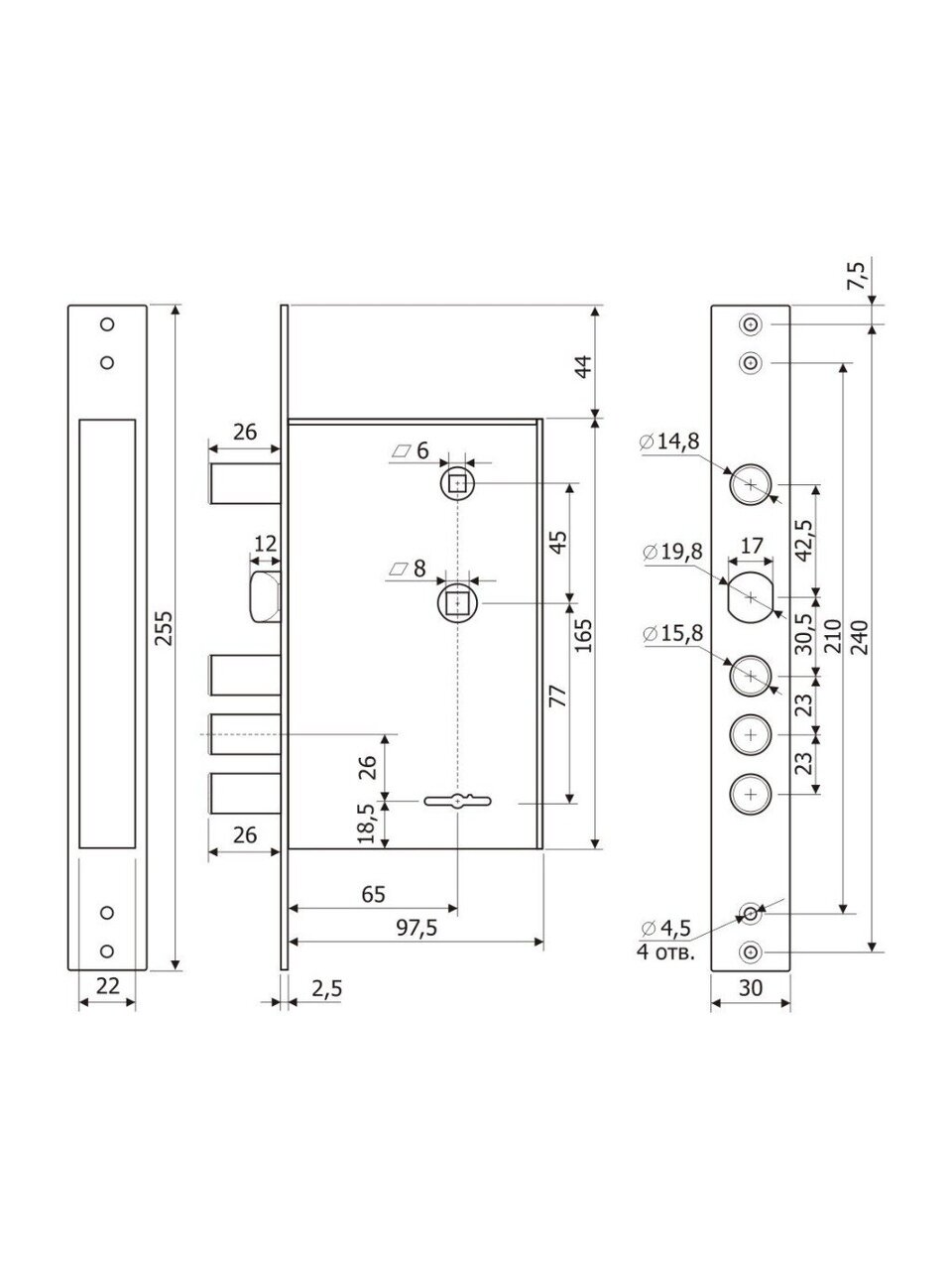- Расстояние между осями замка соответствует стандартам большинства дверей, делая его подходящим для различных типов дверей.