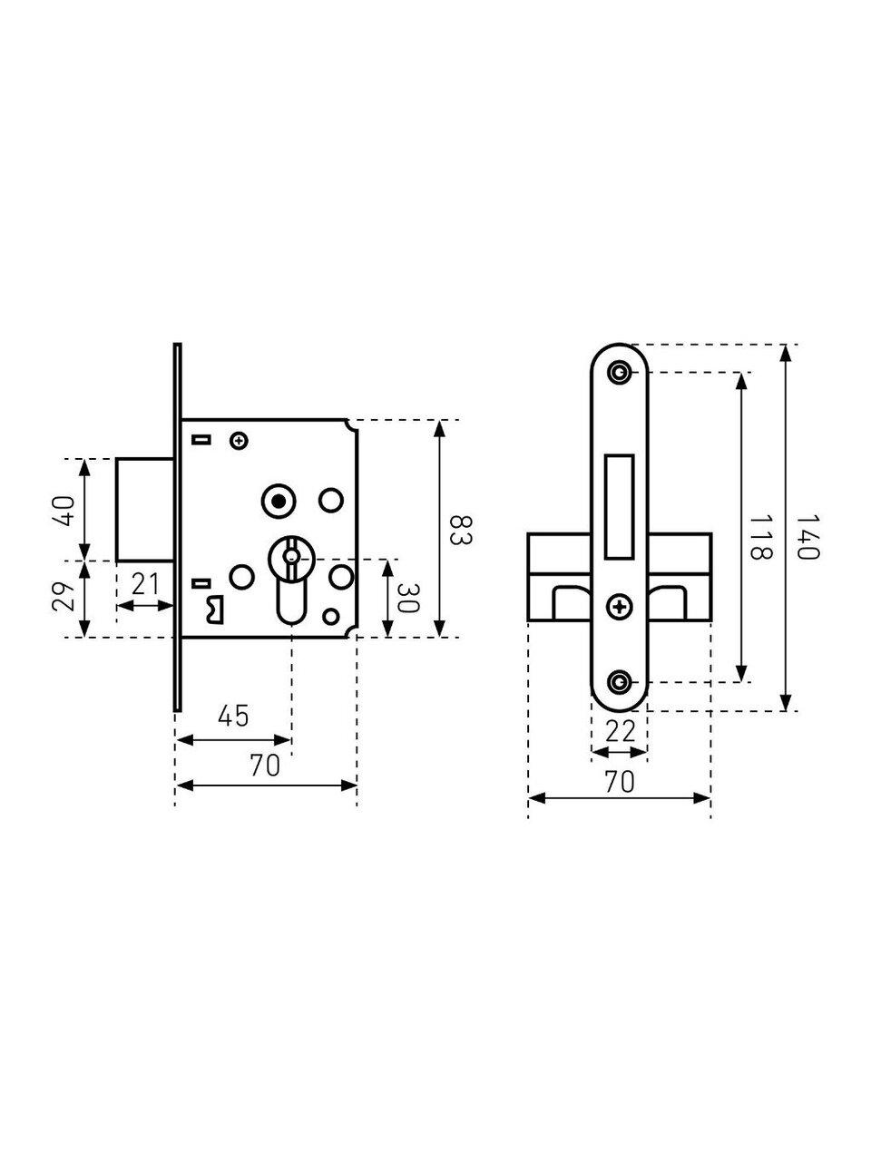 - Расстояние между осями замка соответствует стандартам большинства дверей, делая его подходящим для различных типов дверей.