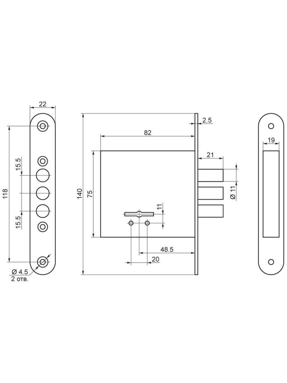 - Расстояние между осями замка соответствует стандартам большинства дверей, делая его подходящим для различных типов дверей.