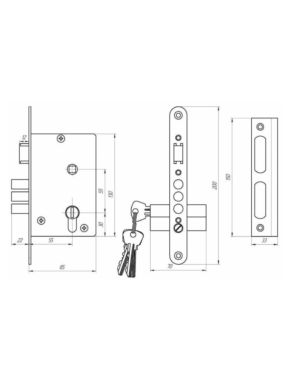 Замок врезной Зенит изготовлен из прочной стали, что гарантирует долговечность и надежность. Цилиндровый механизм обеспечивает высокий уровень безопасности, а наличие четырех ключей в комплекте делает его удобным в использовании. Межосевое расстояние в 55 мм позволяет легко установить замок на большинство дверей.