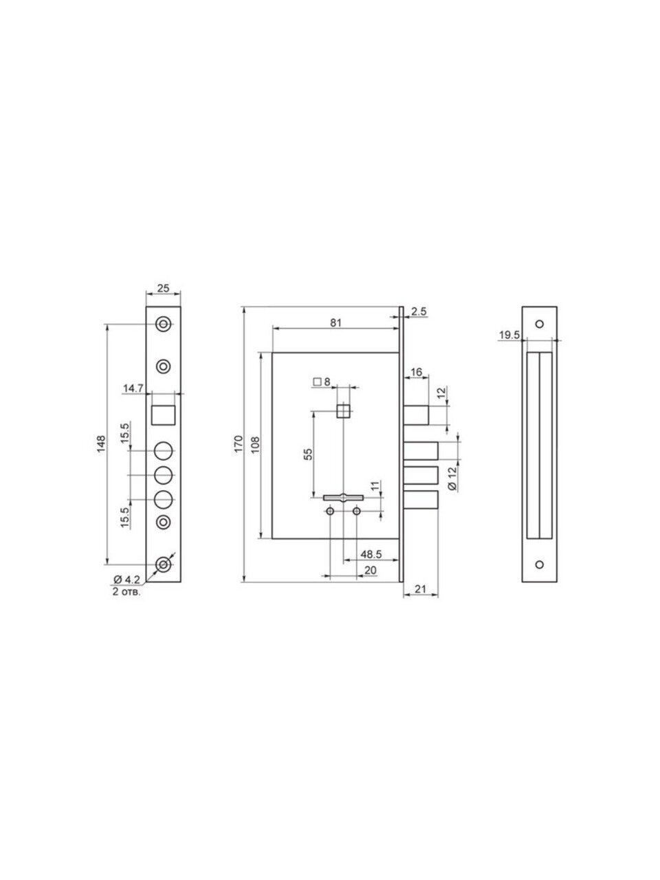 - Вылет засова: 21 мм.