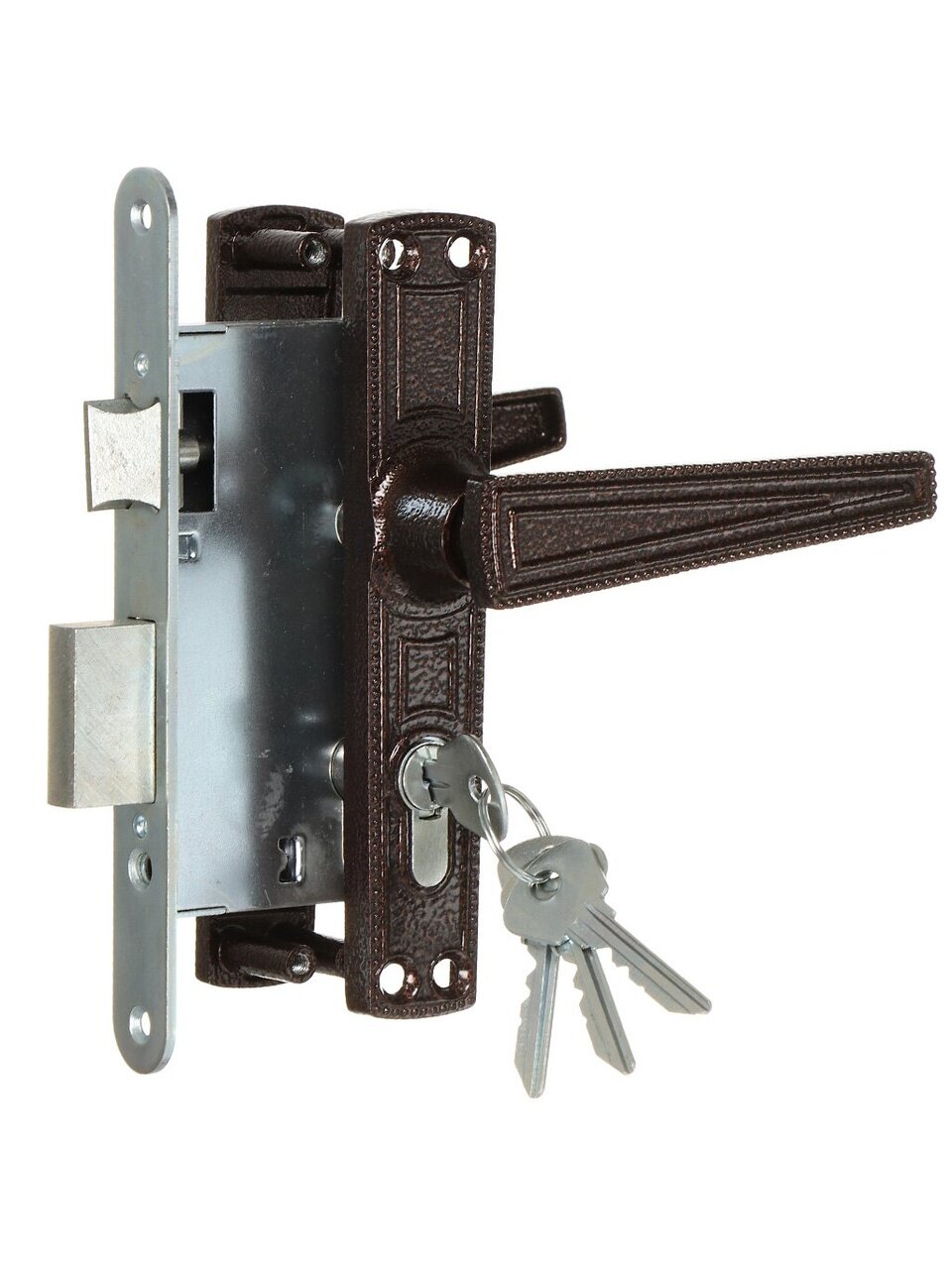 Замок врезной Омега, ЗВ7.01, 00-00000595, ручка в комплекте, цилиндровый, медный