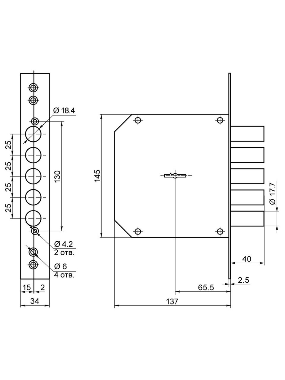 Врезной замок предназначен для на установки на входную дверь. Поставляется с личинкой под сувальдный ключ. Имеет целый ряд защитных конструктивных преимуществ от криминального вскрытия: 5 ригелей с вылетом 40 мм., оцинкованный корпус с надежной защитой от коррозии. Высокая степень защиты от силового взлома.