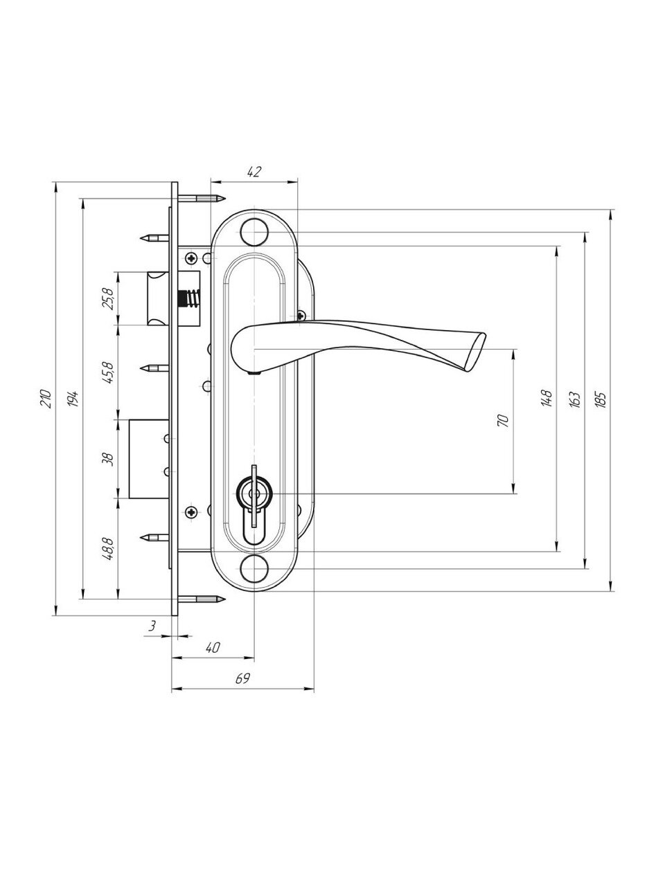 - Замок врезной с ручками предназначен для установки в двери толщиной до 45 мм, правого и левого открывания;