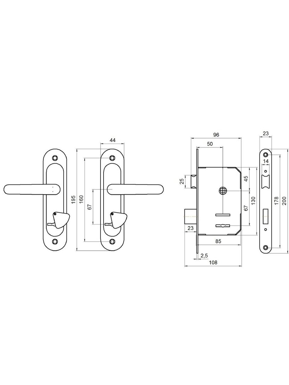 Комплектация: замок, 3 ключа, ручки, ответная планка, винтовые стяжки.