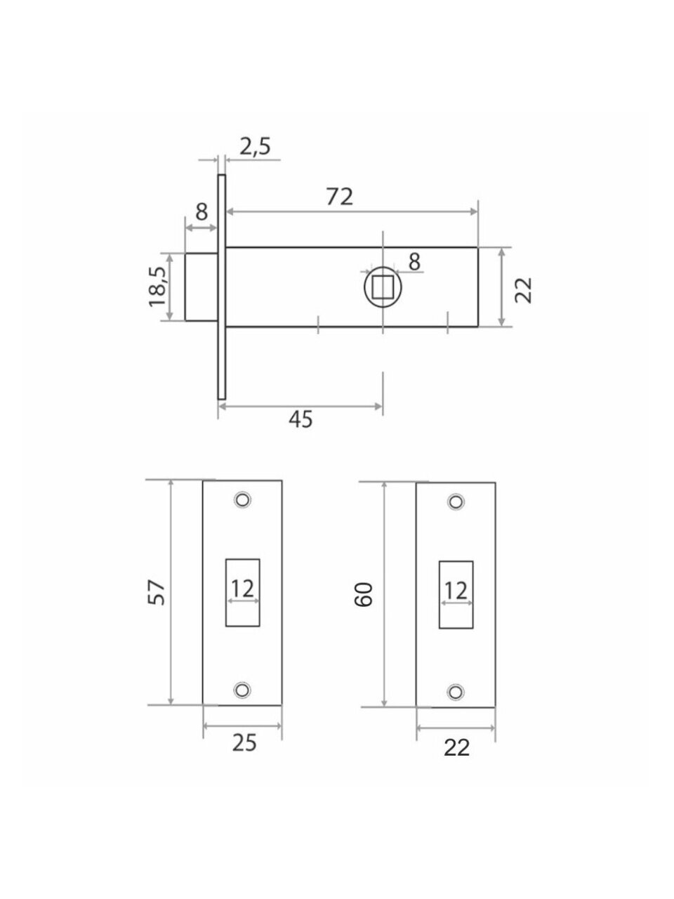 Защелка магнитная межкомнатная имеет стандартное отверстие под квадрат 8х8 мм, что позволяет комплектовать ее с любой раздельной ручкой на розетке.