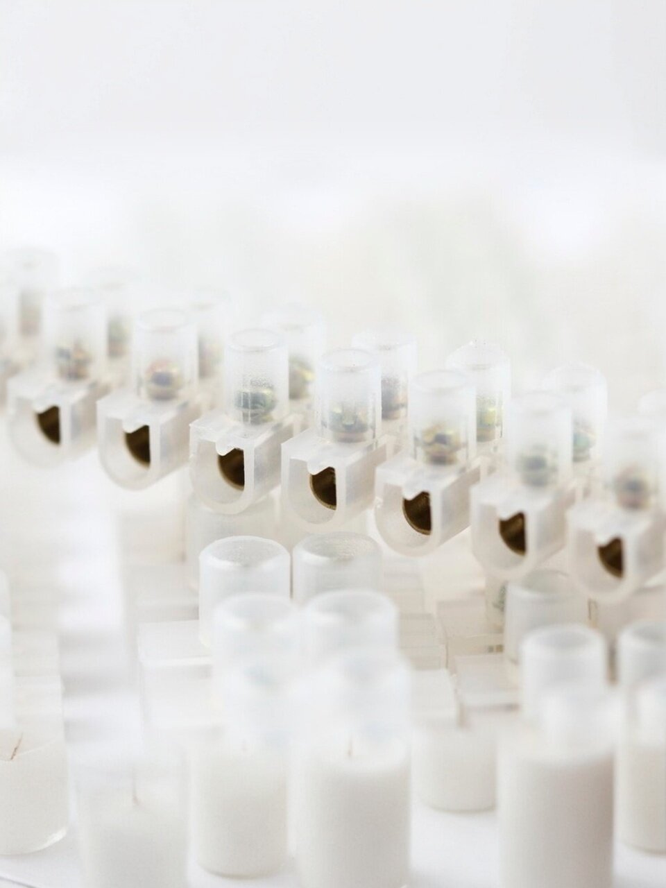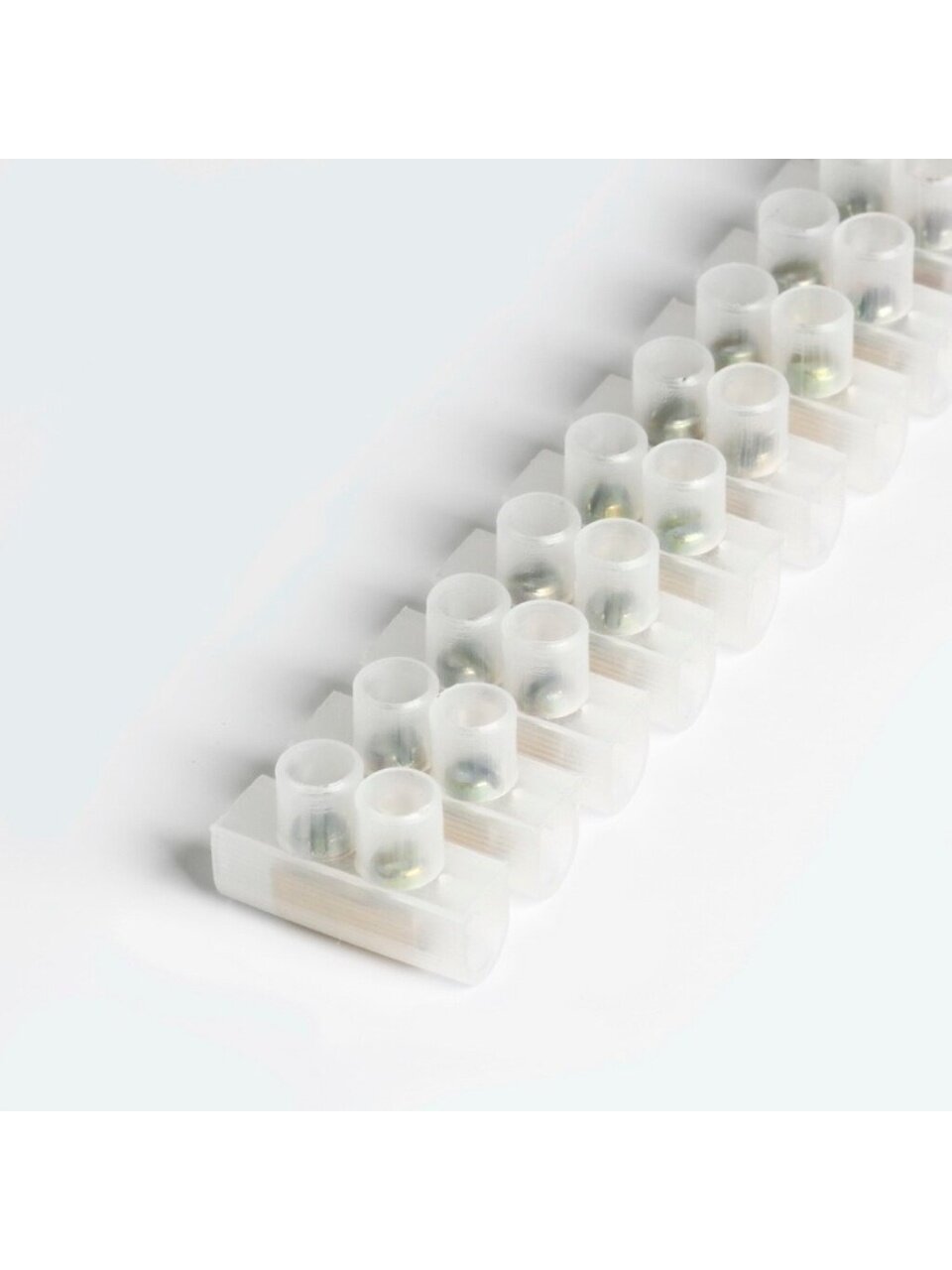 Применяются для винтового соединения проводников, защищая провод от повреждения и исключая возможность замыкания на корпус электроустановки. Изоляционный каркас изготовлен из белого негорючего прозрачного полиэтилена, клемма и винты – латунь.