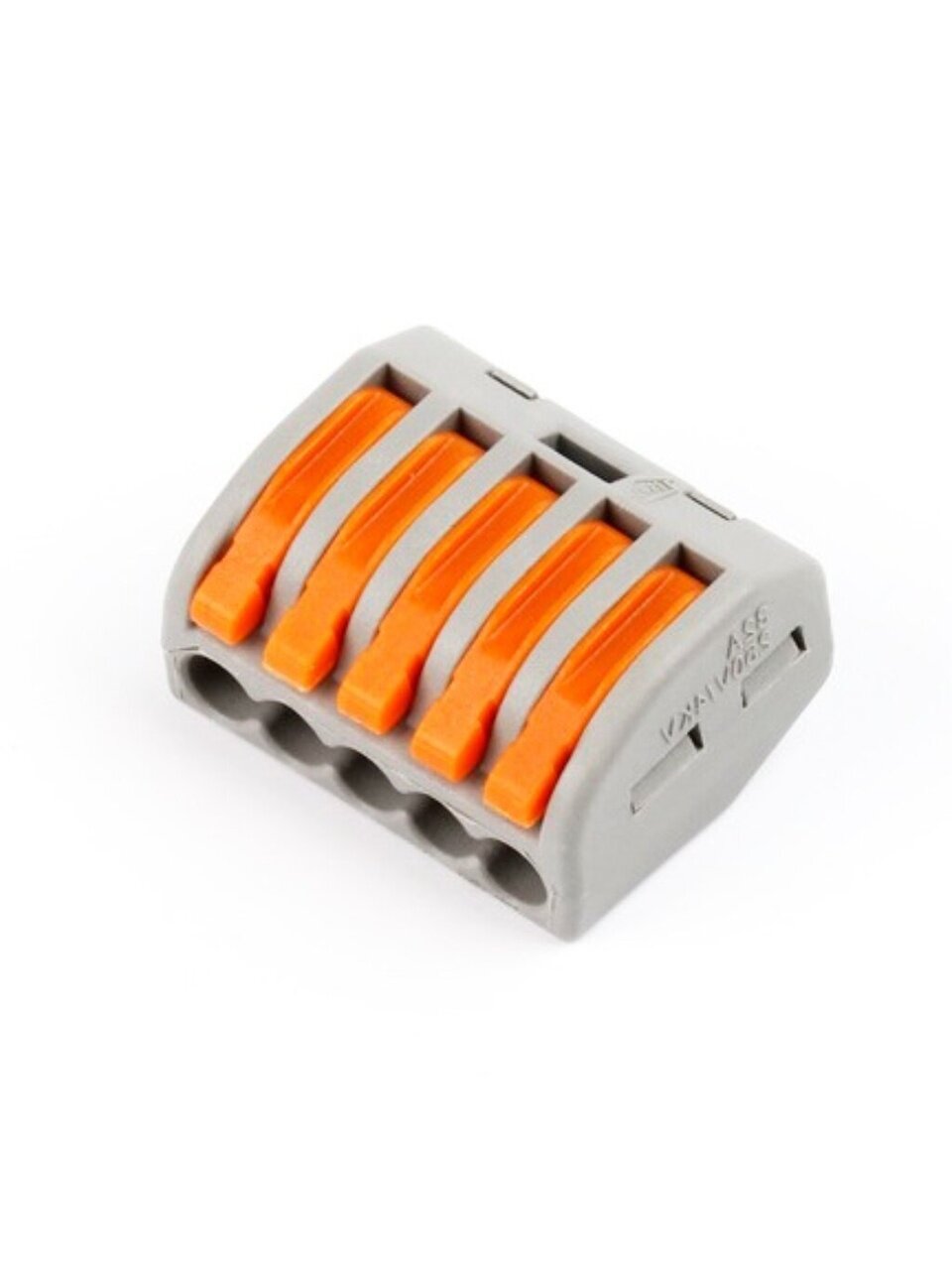 Строительно-монтажная клеммы предназначены для соединения проводников. Пружинные зажимы клемм обеспечивают надежный и долговечный контакт. Наличие технологического отверстия позволяет проверять наличие электрического контакта между проводниками. Последняя цифра в наименовании позволяет определить количество соединяемых проводников. Преимуществом строительно-монтажных клемм перед другими видами электрических соединений является простота монтажа и надежная защита от контакта с токоведущими частями.