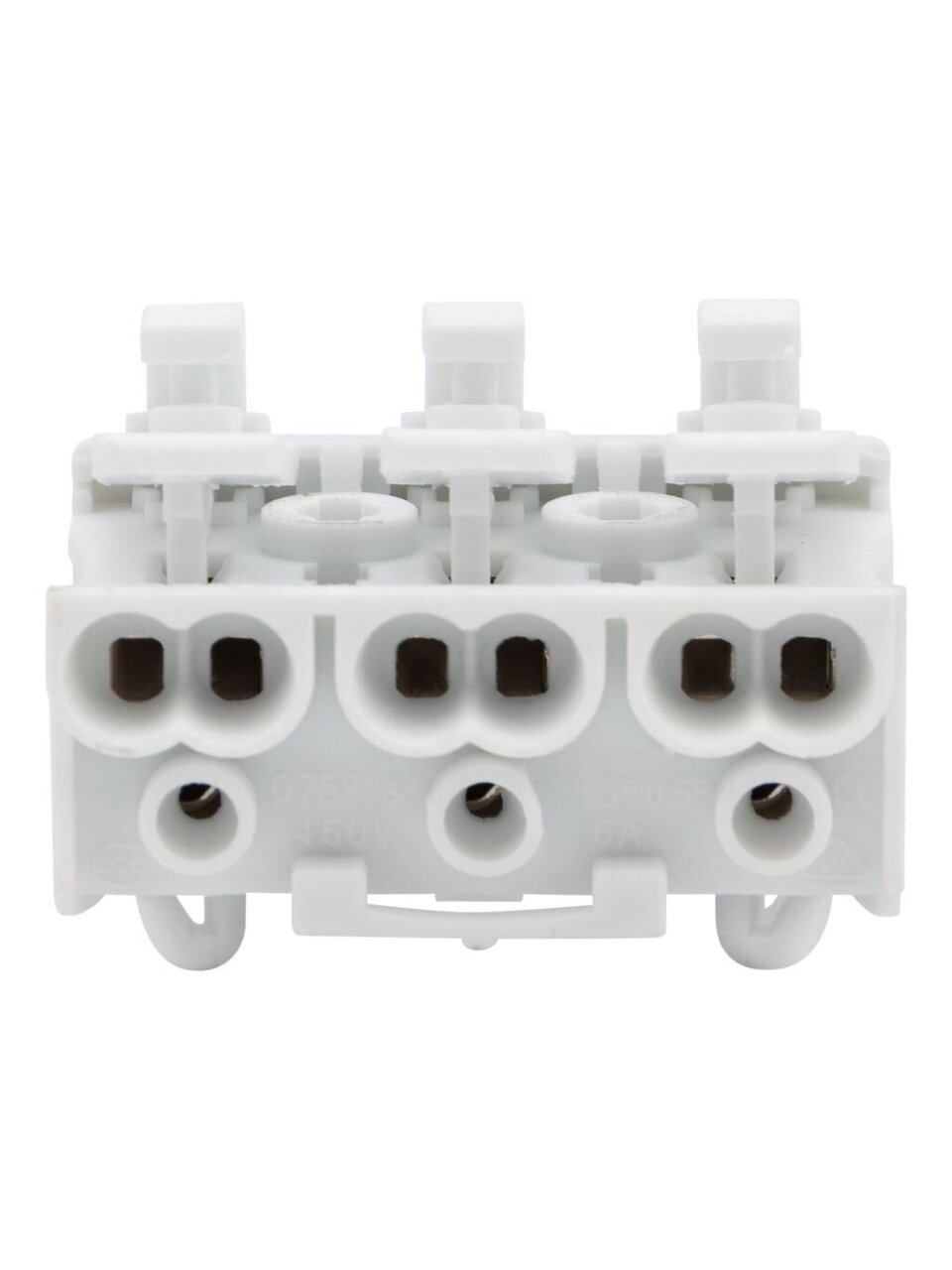 Пружинные трехполюсные клеммы с заземлением и с монтажными ножками REXANT предназначены для присоединения и ответвления одножильных и многожильных медных проводников в электрических цепях переменного тока напряжением до 450 В. Наличие маркировки («фаза», «ноль», «земля») на подвижной части зажима, наличие монтажной ножки и винтовой контакт заземления.