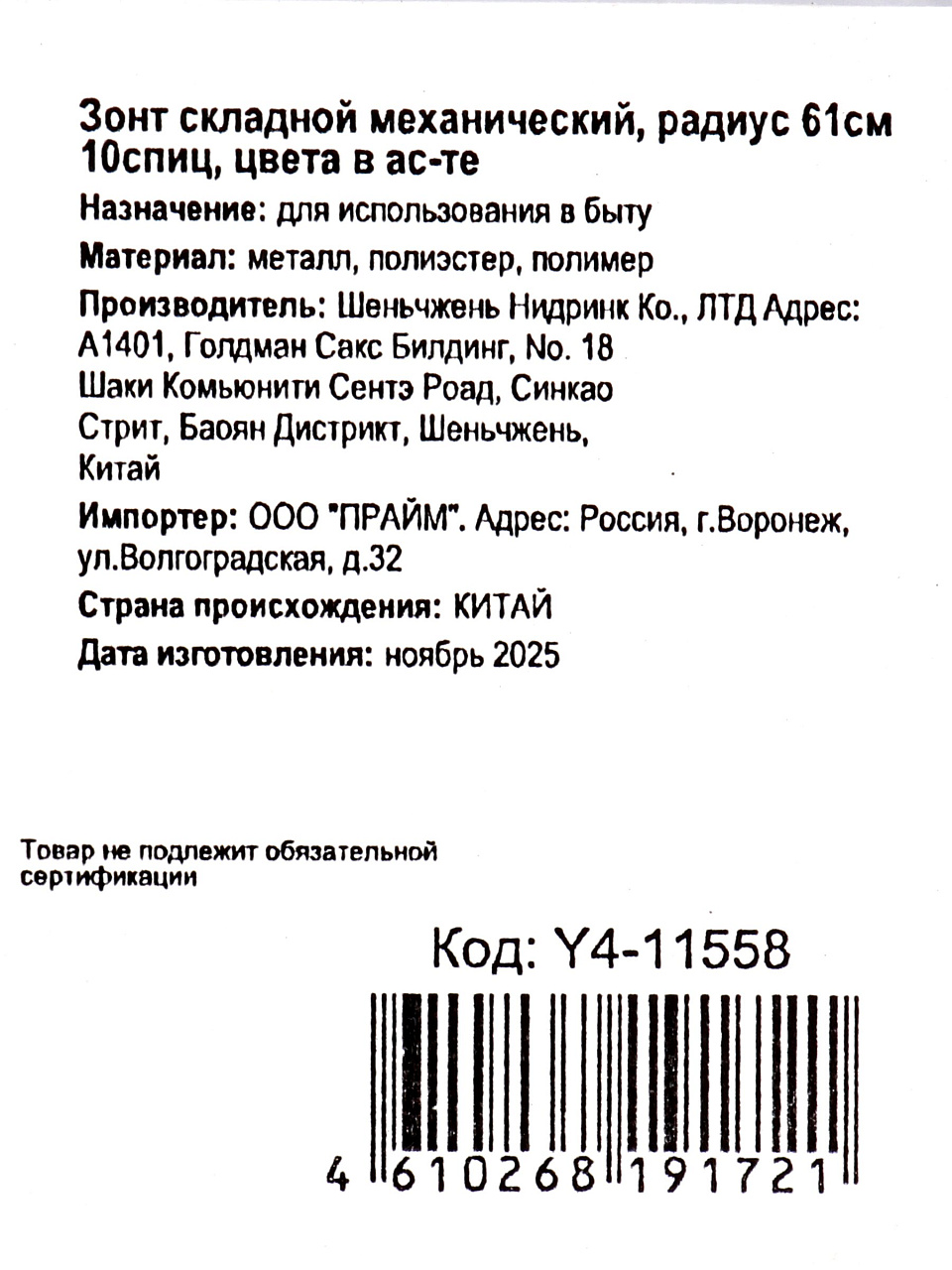 Добавьте зонт складной механический, 10 спиц, 61 см в корзину — получите универсальную защиту от дождя с доставкой и гарантией качества по выгодной цене.