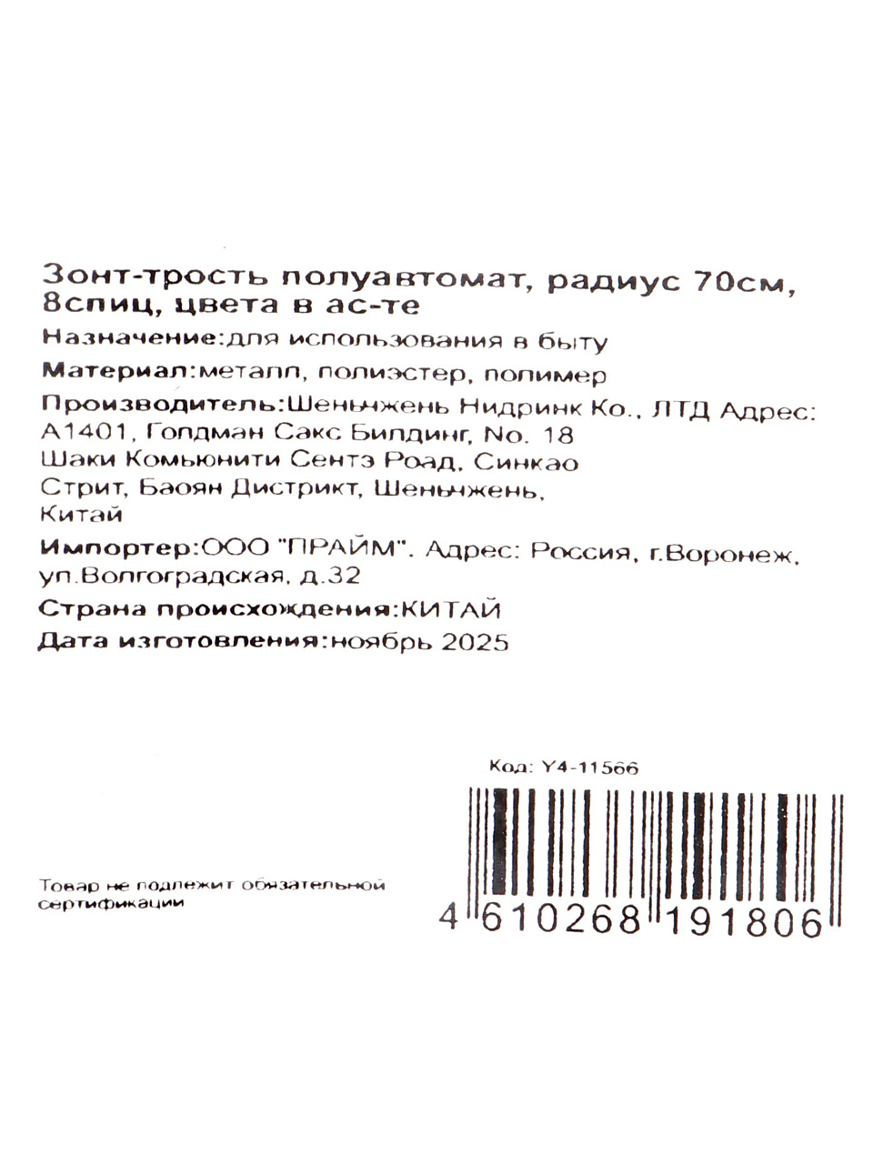 Вы можете приобрести «Зонт полуавтомат, трость, 8 спиц, 70 см, в ассортименте, Y4-11566» и другие товары в нашем интернет-магазине в Воронеже по низким ценам и с бесплатным самовывозом.
